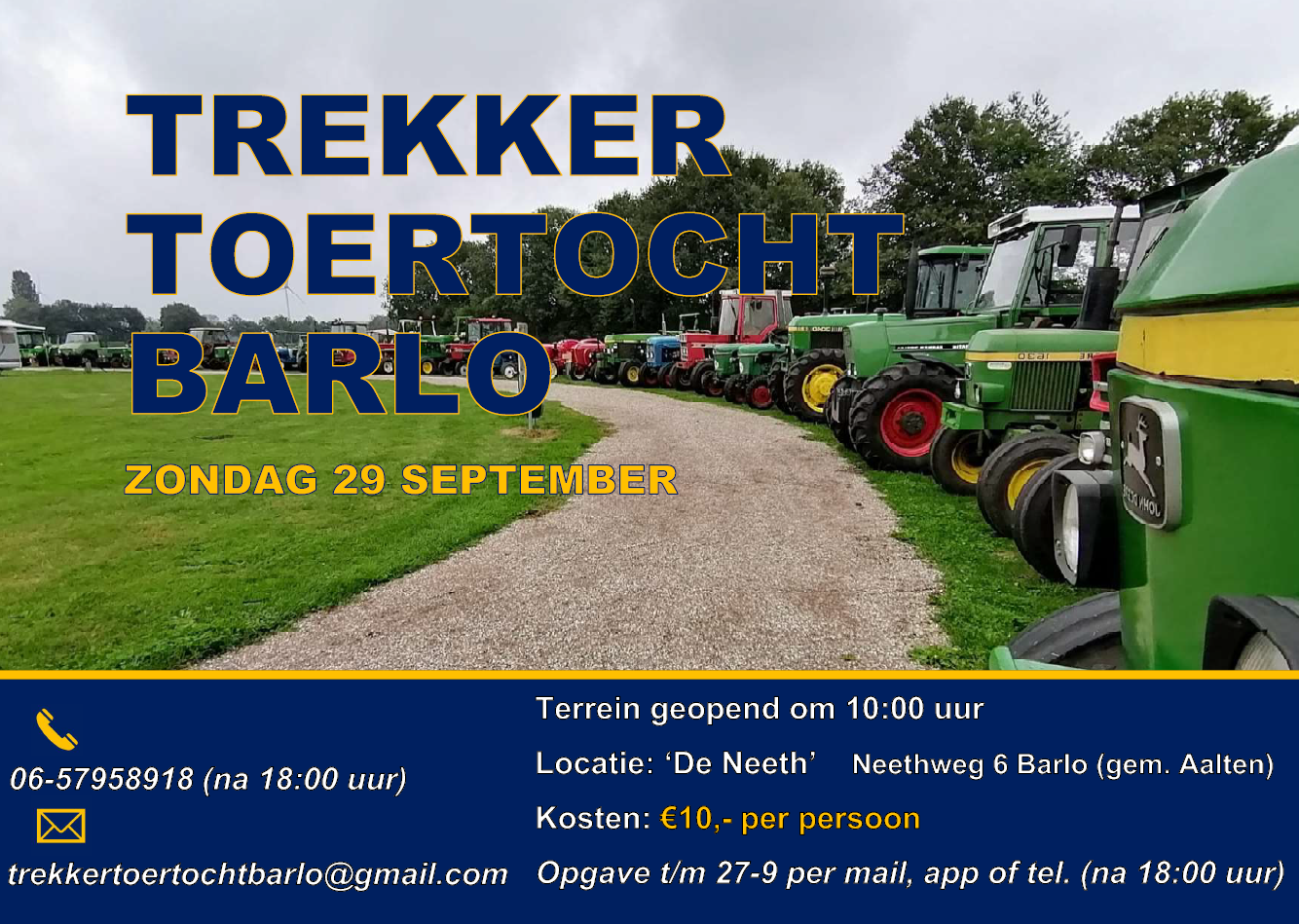 Zondag 29 September staat er weer een toertocht op het programma vanuit het mooie Barlo.